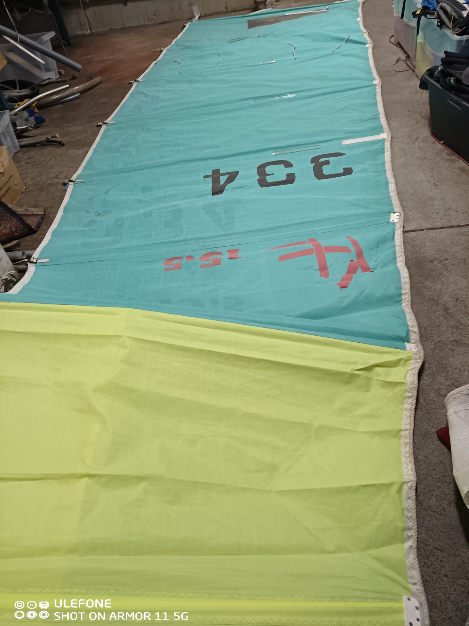 Storsegel till katamaran i dacron, med genomgående lattor