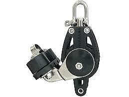 driftsäkra spärrblock. 57mm trissa. Manuell till och frånkoppling. Max tampdiameter 10mm. Arbetslast 320kg. Brottlast 1080kg.